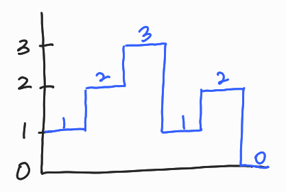 예를 들어, 1, 2, 1, 3, 1로 고도의 y좌표가 변한다고 했을 때