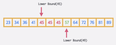 원하는 값 target 이상이 처음으로 나오는 위치를 의미합니다. 이는 바꿔말해 target보다 같거나 큰 원소의 위치들 중 가장 작은 값을 의미합니다.