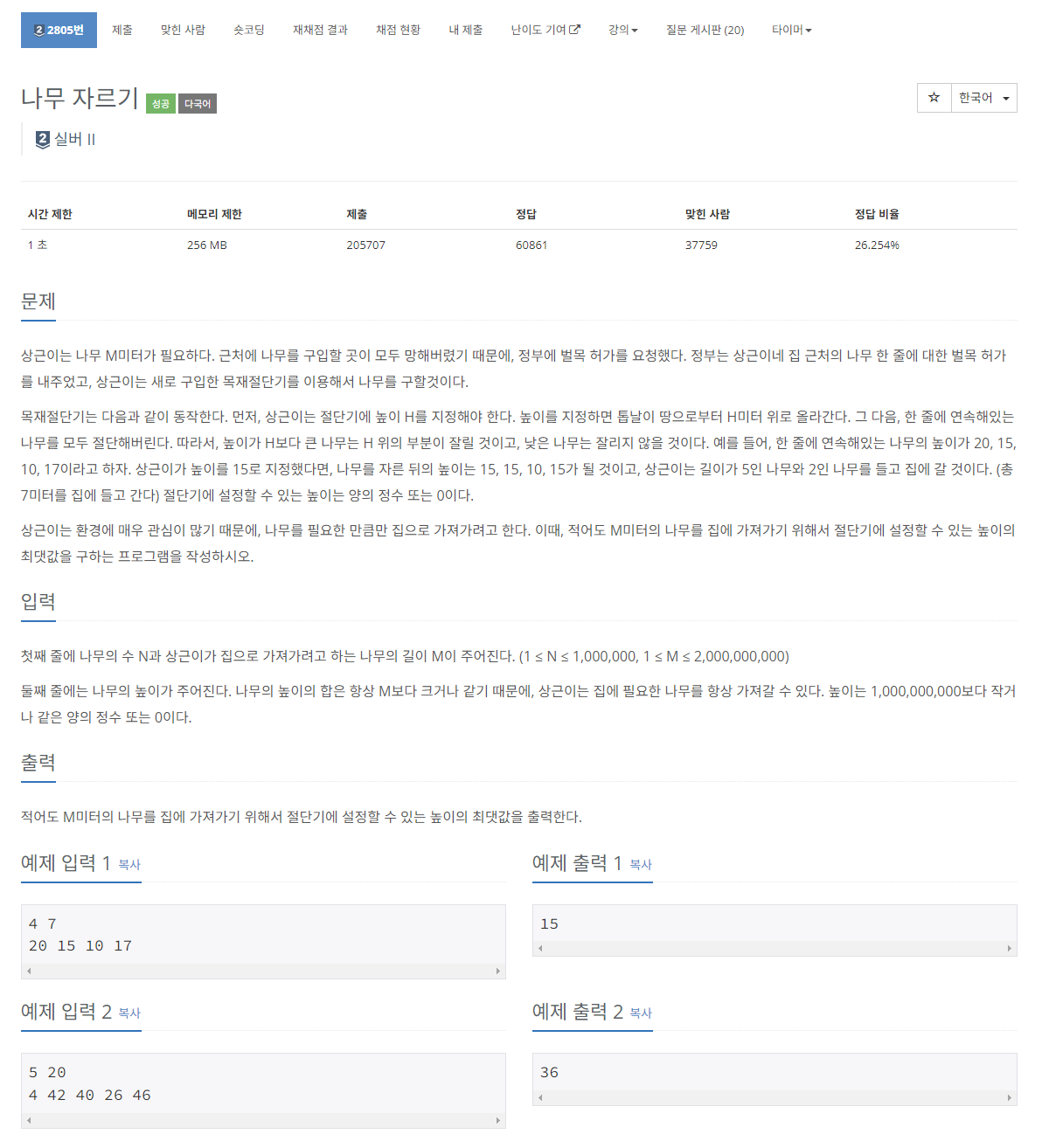 https://www.acmicpc.net/problem/2805