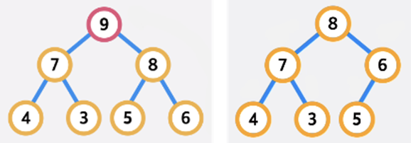- 힙은 루트에서만 값 삭제가 이루어지므로, 루트의 값을 삭제합니다.