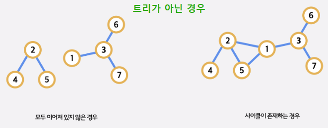 노드끼리 전부 연결되어 있으면서 사이클이 존재하지 않는 그래프