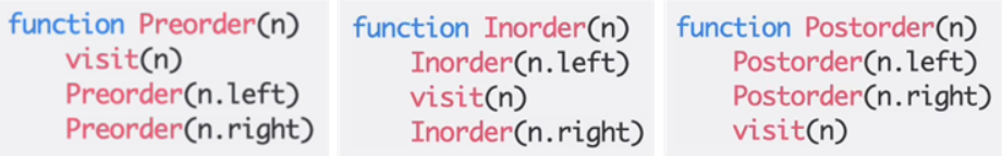 이진트리는 재귀를 사용하면 탐색을 비교적 쉽게 구현할 수 있습니다. 어떤식으로 방문하는 순서에 따라, 전위 탐색(Preorder Traversal), 중위 탐색(Inorder Traversal), 후위 탐색(Postorder Traversal) 크게 세 가지로 나뉩니다.