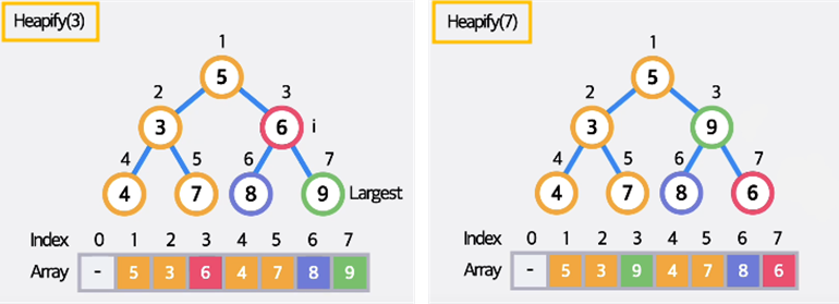 swap(arr[i], arr[largest]) // 해당 자식과 현재 노드를 교환해준 뒤